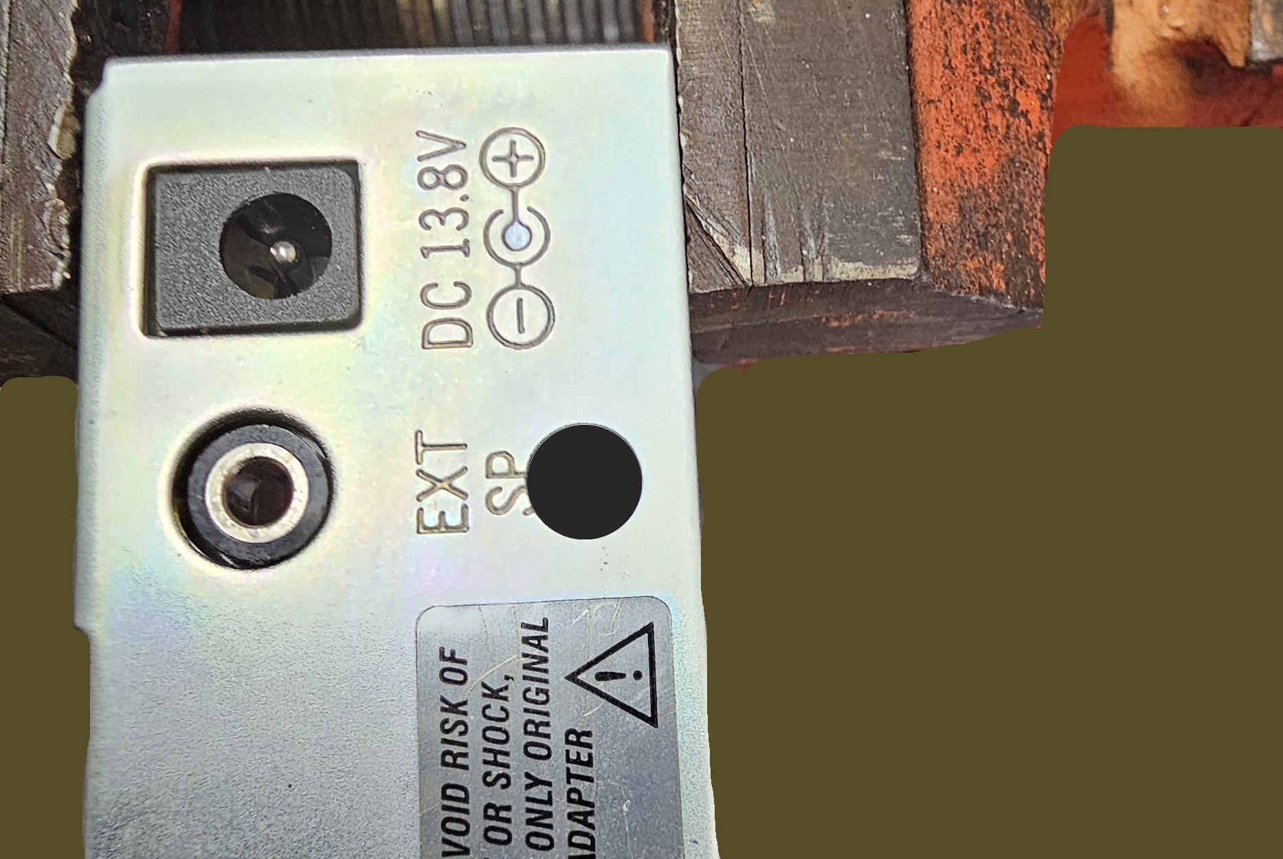 Mark a place to center punch the rear panel at 1/4" up from the bottom edge of the rear panel and centered on the external speaker jack (left and right). Center punch this location to allow a pilot hole to be drilled. Drill a 1/8" pilot hole where you center punched the rear panel. Be careful not to come in contact with any components with your drill or bit. Then, expand the hole to 1/4" to accommodate the 1/8" (3.5mm) chassis mount stereo jack.