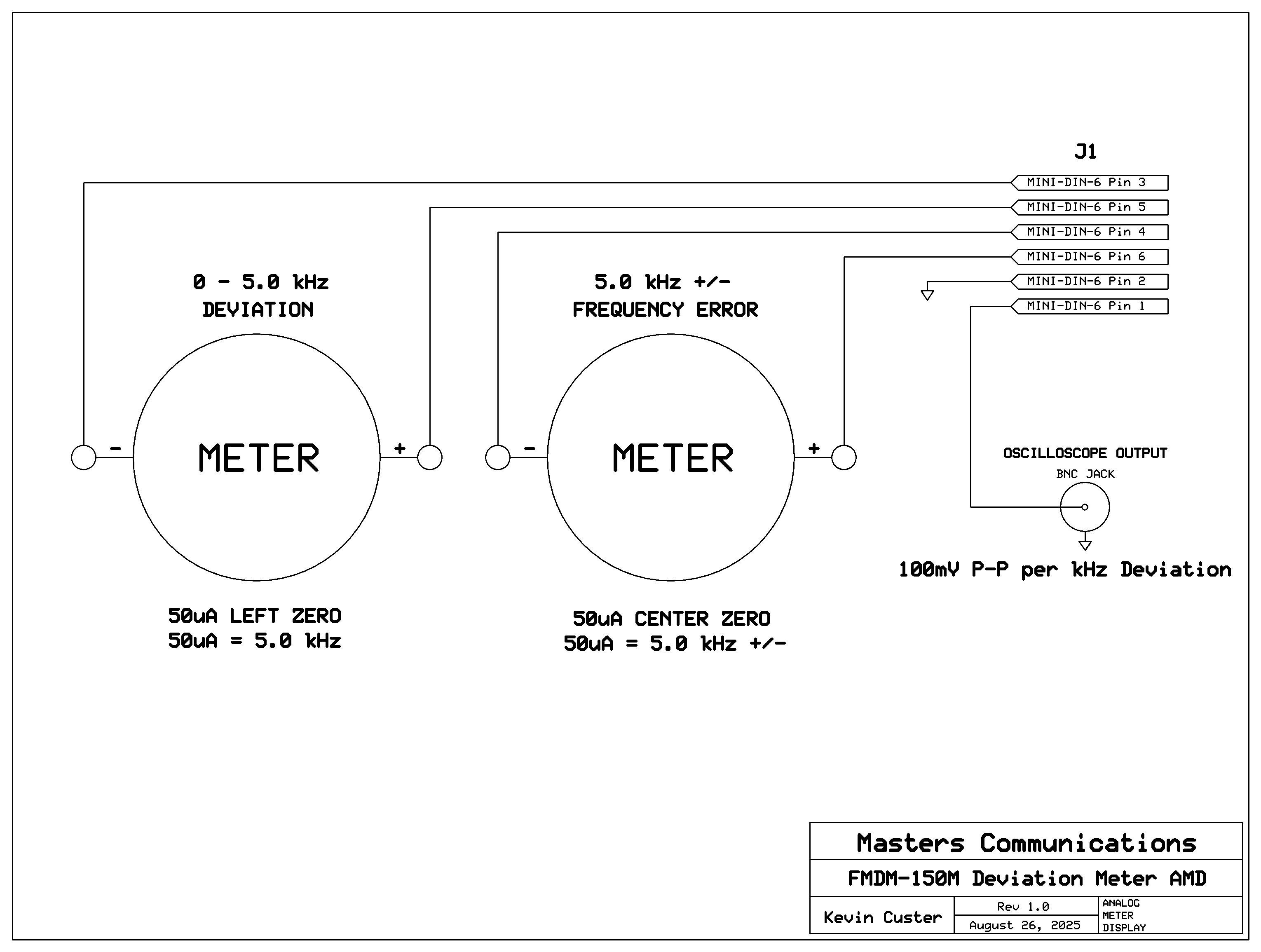 The circuit board for the analog meter display panel has a rear mounted BNC female connector to take the DC coupled signal to an optional oscilloscope (not included). We have tested several of the the inexpensive portable (DSO) oscilloscope kits with a plastic or pre-cut acrylic case found on eBay and AliExpress - and they work fine for this application. Unfortunately many portable scope units require 9VDC to operate, and that supply voltage is not available from any of the deviation meter components. Some portable oscilloscopes are supplied with their own power supply. A portable oscilloscope option isn't currently available from Masters Commumications. We do, however, have a short male to male BNC cable for connecting your own o'scope. Portable oscilloscopes are available from several sources like those already mentioned, or even on Amazon.
